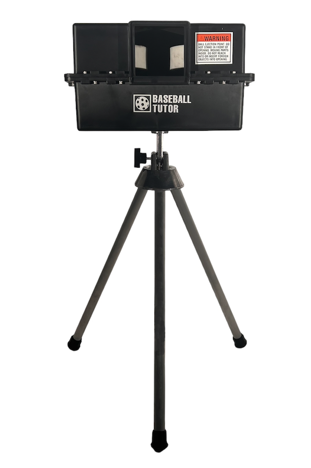 Baseball Tutor Junior. Throws baseball-size Polyballs. Fastballs only at three different speeds to 60 MPH.